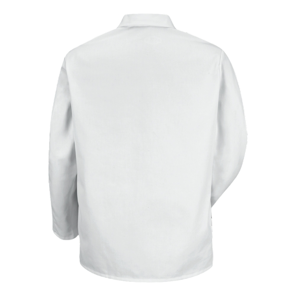 Work long hours at the meat market with little worry about what you’ve got on under your butcher coat. Six large dome snap closures keep the mess off your clothes, and 3 pockets, one interior and two exterior, keep your tools close by. Two side vent openings and its 100% spun polyester fabric add comfort to the day so you feel your best all shift long.