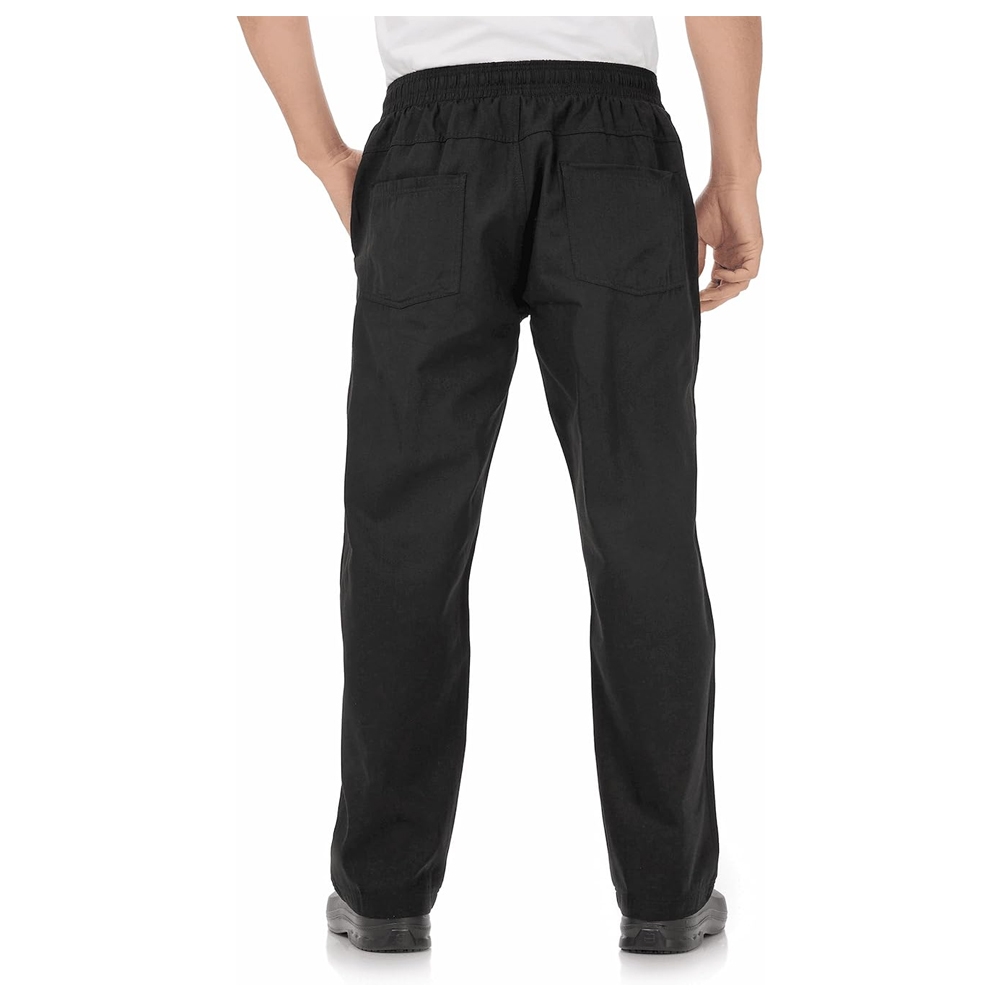 • chef pants with all-around elastic waist and drawstring for maximum security