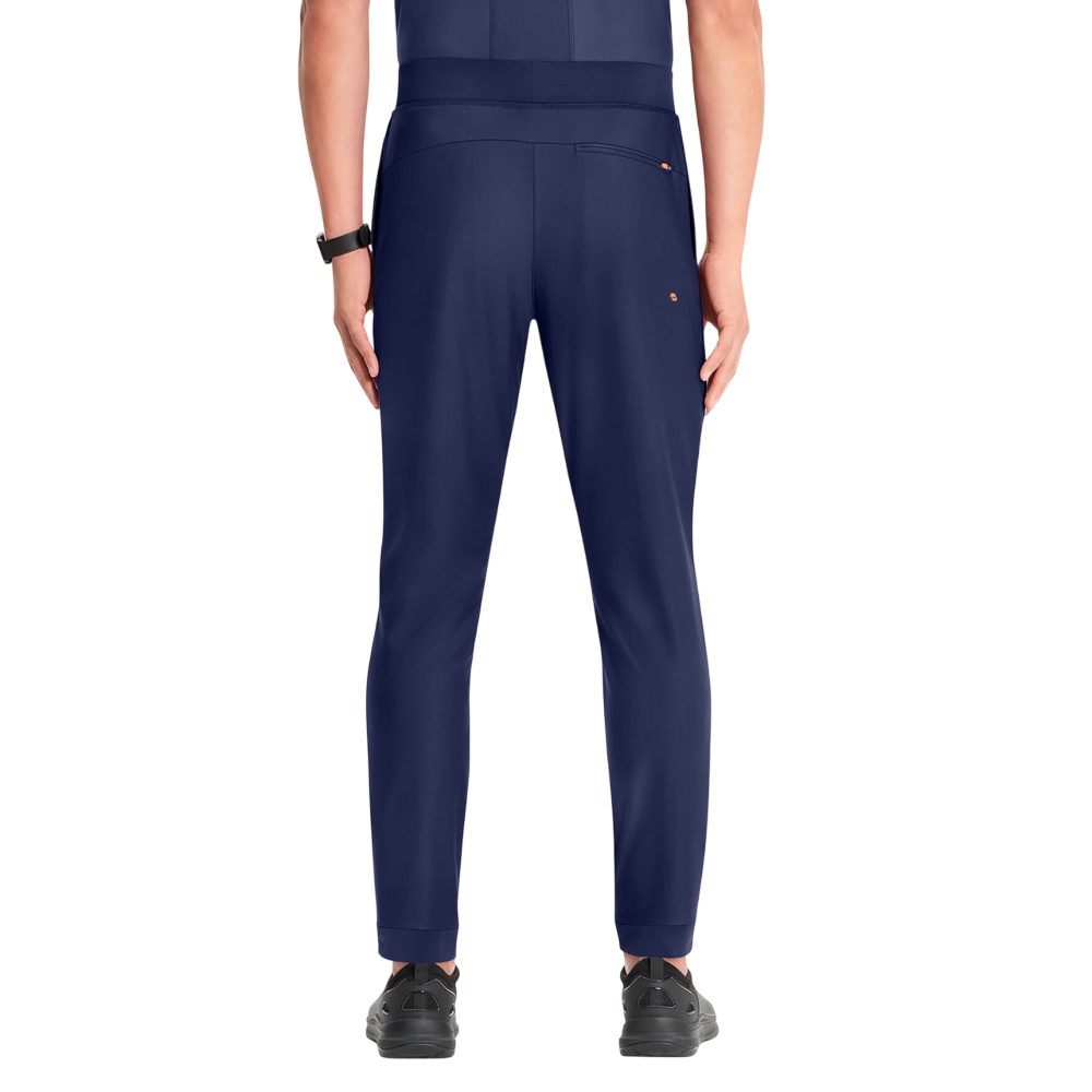 - Flat front pant hem with back elastic
