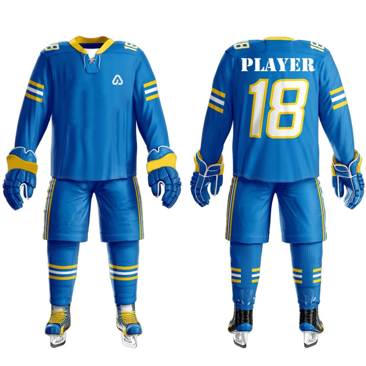 - 100% Polyester interlock and mesh Ice hockey Uniforms