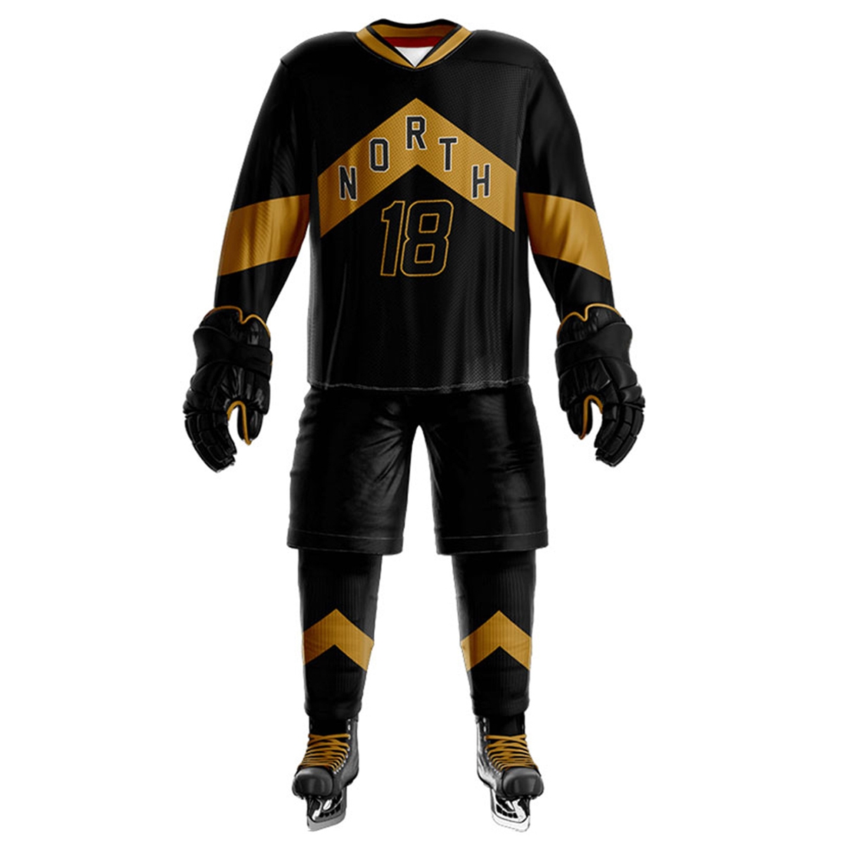 • 100% Polyester interlock and mesh Ice hockey Uniforms