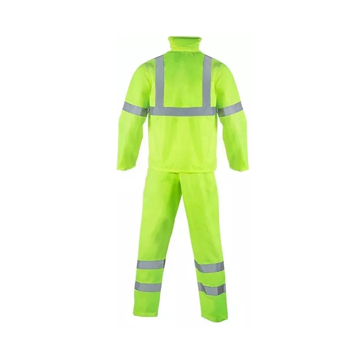 • Features Lightweight fabric|Reflective bands,Elasticated waist on trousers,Heavy duty zipper front on jacket|Front flap pockets on jacket|Taped seams|Adjustable ankle poppers.