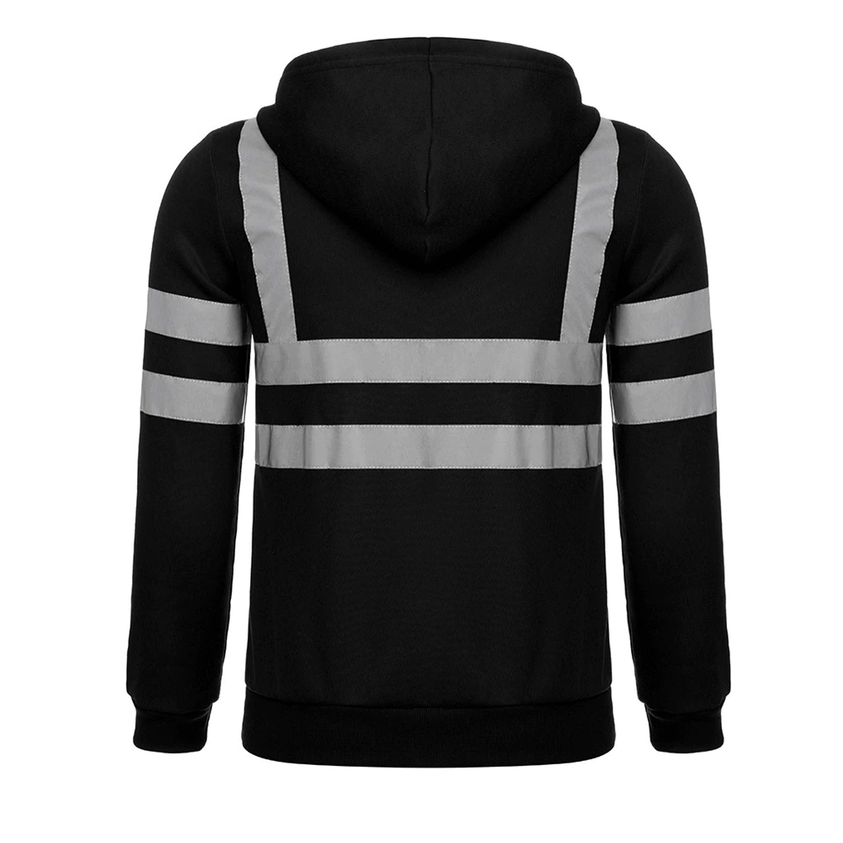 It has two lower pockets and an adjustable drawstring work wear hood.